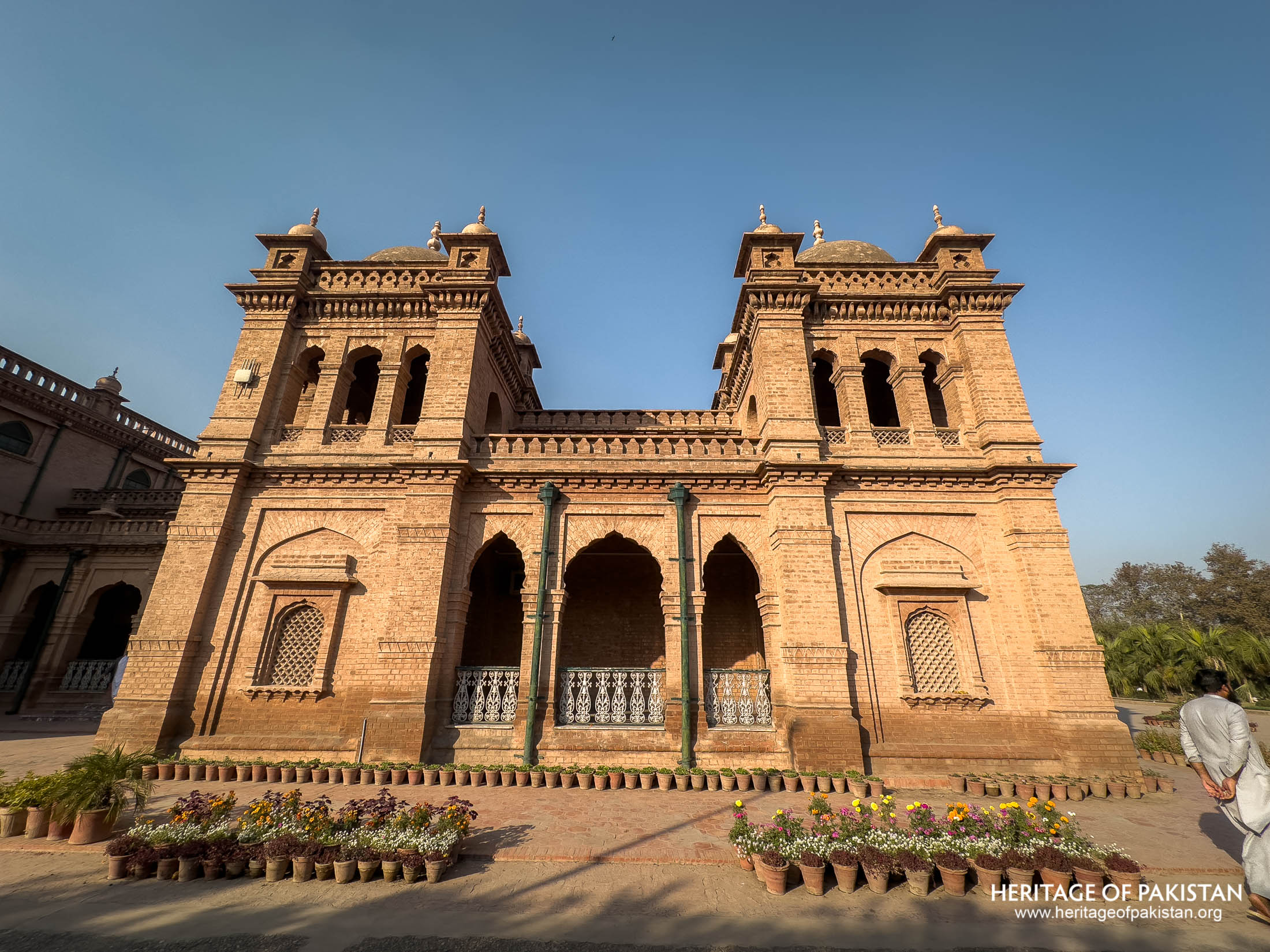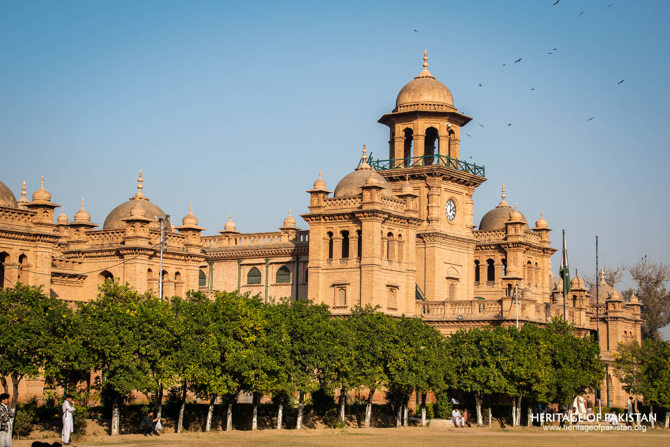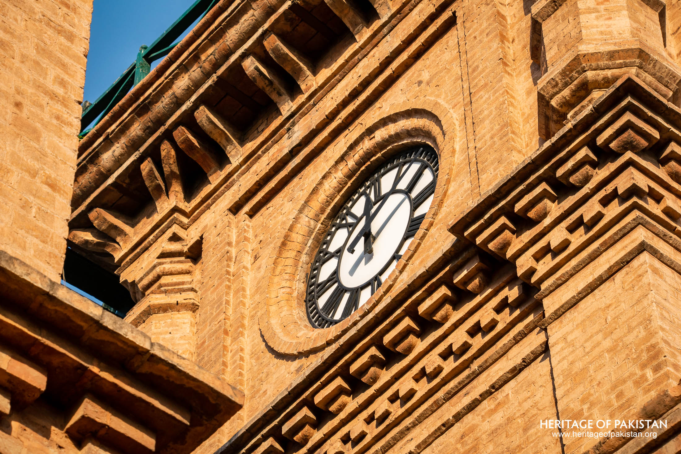 Its architecture is a notable example of Indo-Saracenic design, with a symmetrical layout, a tall central clock tower, domed chhatris, arched windows, jaalis, and Mughal-style turrets.