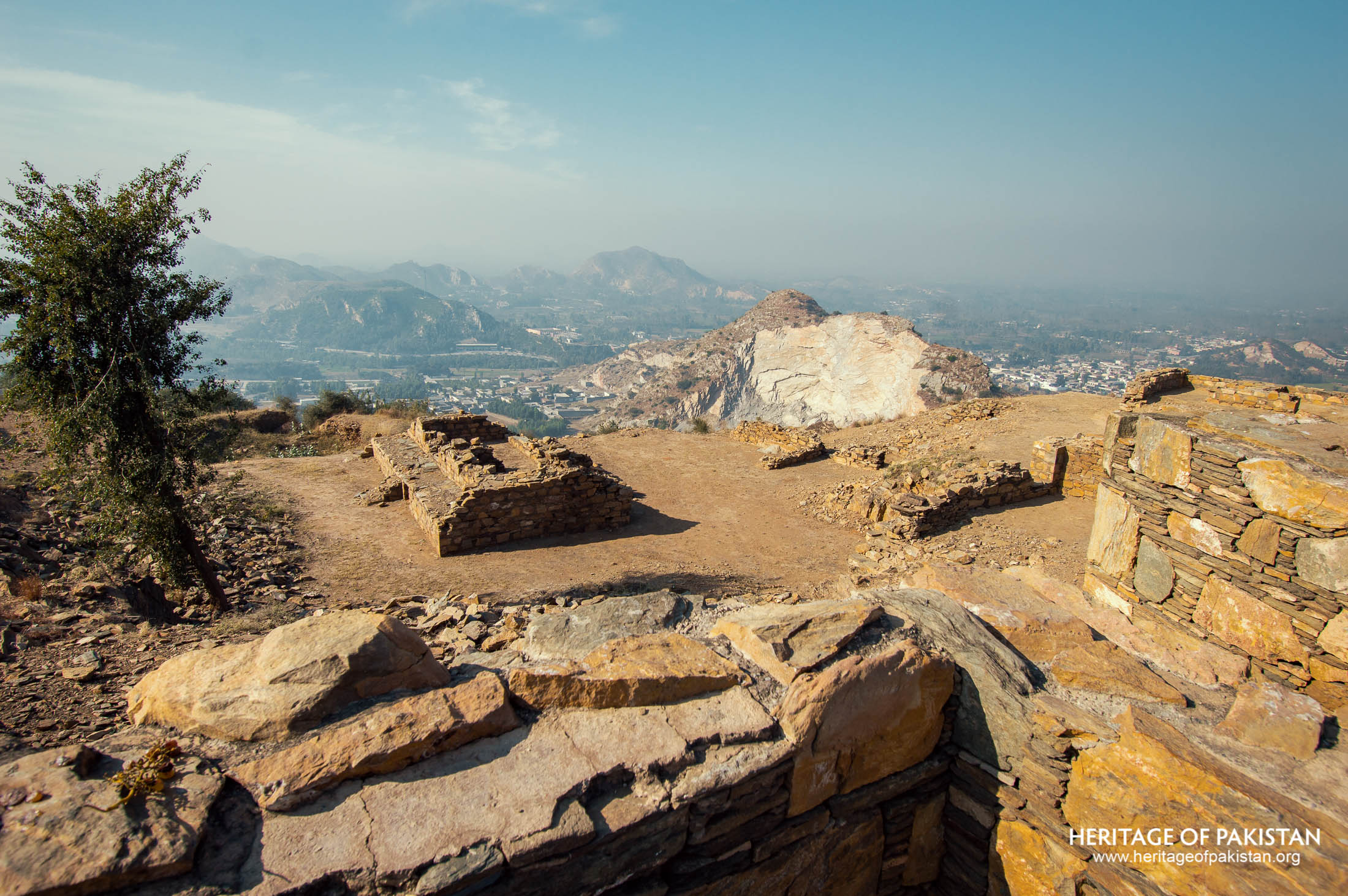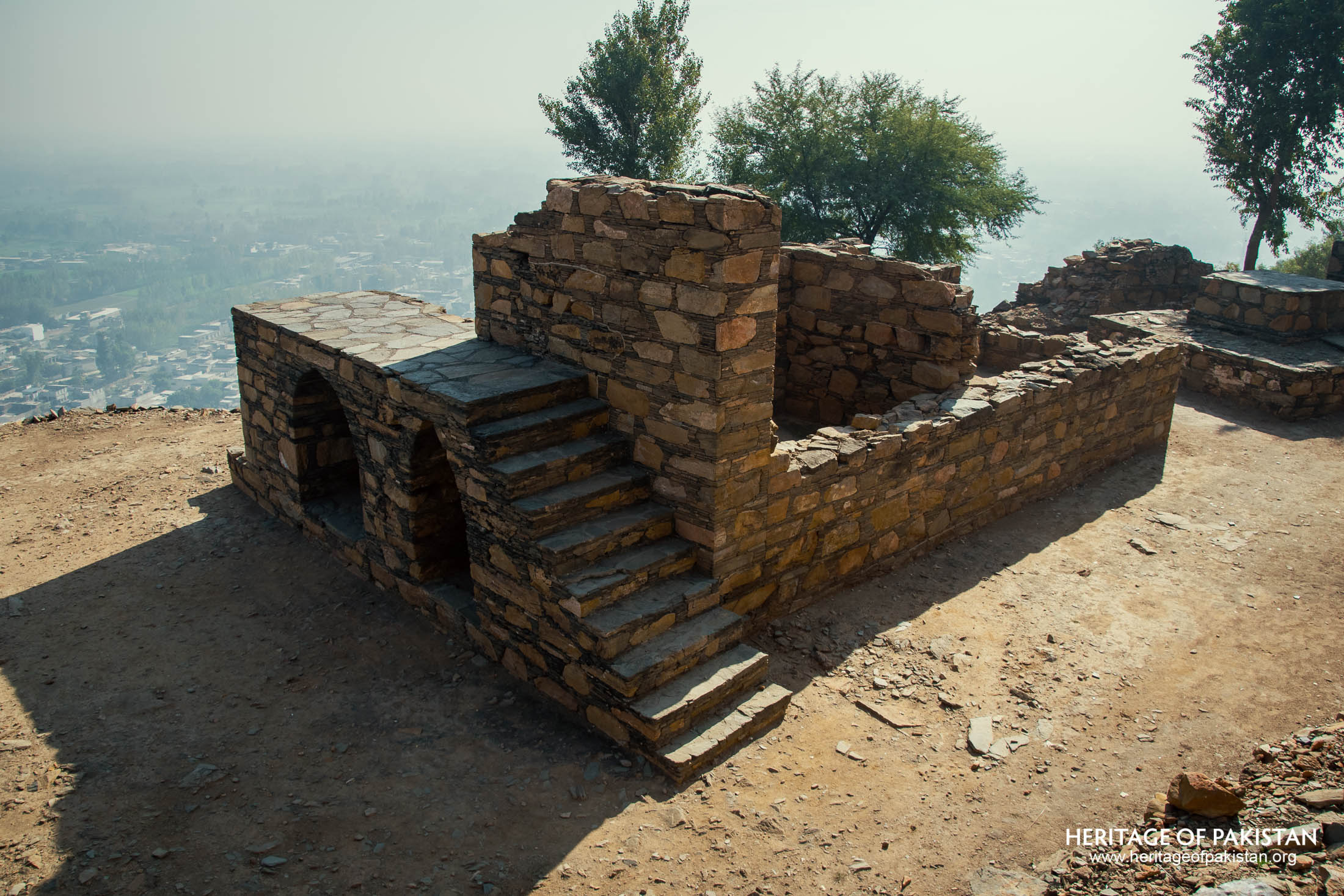 Jamal Garhi is a Buddhist archaeological site located approximately 18 kilometers from Mardan, situated on a mountain that offers a commanding view of the surroundings.